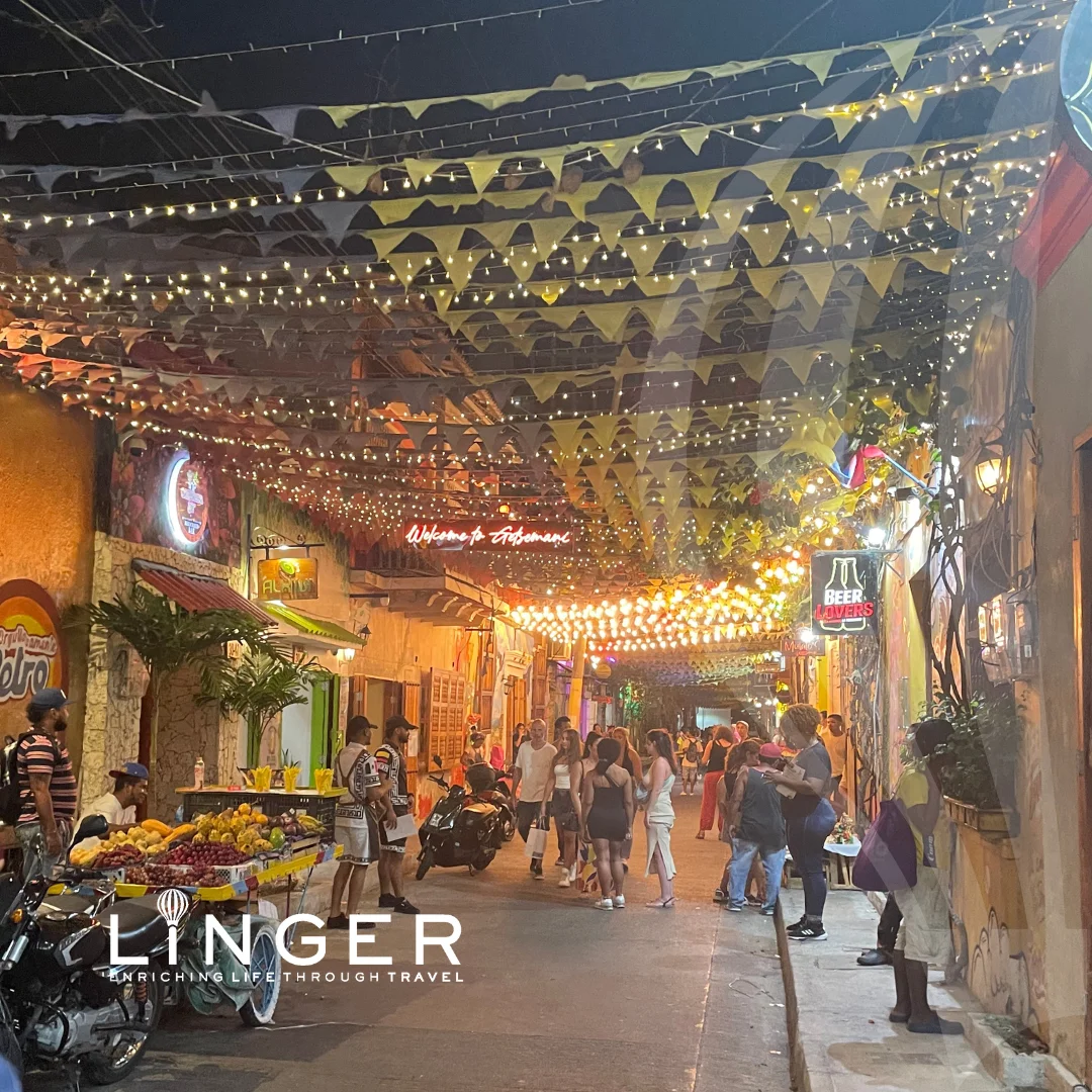 “By night Cartagena buzzes with life to the sound of live salsa, marching bands and the laughter of friends. The artistic graffiti splashes yet more colour onto the kaleidoscopic city and the street vendors, selling everything from cigarettes to large ants!, add to the kinetic exuberance.”